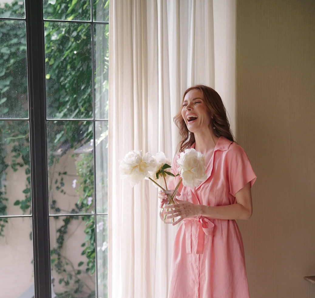 The Peony Midi Dress stands as a timeless symbol of grace and eco-conscious fashion. Crafted from 100% soft linen, this midi-length beauty effortlessly transcends seasons, promising a versatile addition to her wardrobe. The hand-loomed fabric embraces a V-neckline, a charming a-line silhouette, and gathered puff sleeves, resulting in a dress that flatters with every sway.